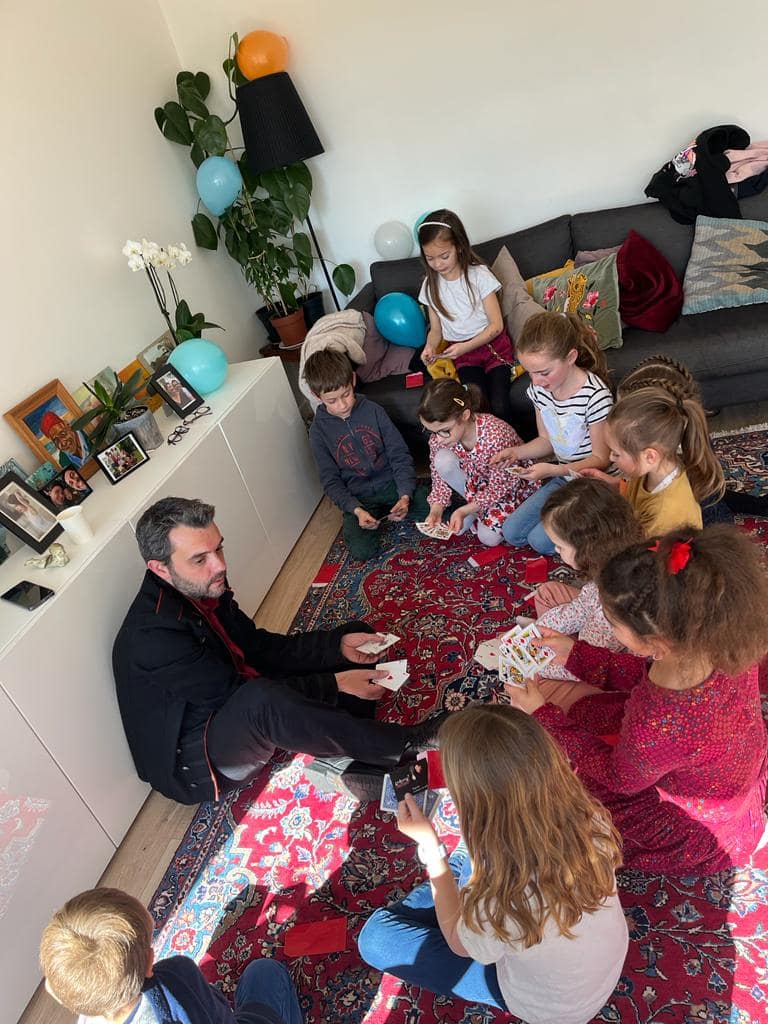 Je propose également des ateliers de magie pour les enfants plus âgés, où ils peuvent apprendre quelques astuces et secrets de magicien. Ces ateliers ludiques permettent aux enfants de découvrir l’art de la magie, de développer leur dextérité et de renforcer leur confiance en eux, tout en s’amusant ! C’est une activité idéale pour des groupes ou des événements où l’interaction et la créativité sont de mise.